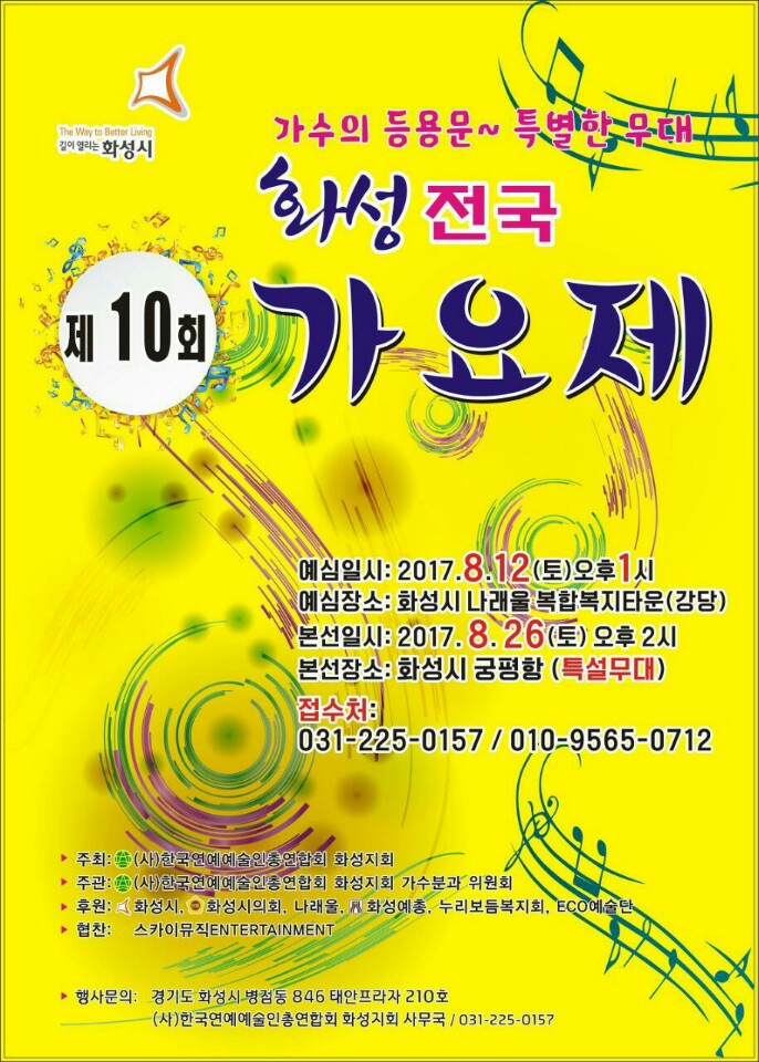 제10회 화성전국가요제~ 페이지 정보 작성자 화성예총 댓글 0건 조회 3,346회 작성일 : 17-07-24 본문 가수의 등용문!!! 화성 전국 가요제가 궁평항에서 실시됩니다. 관심 있으신 시민들의 많은 참여 부탁드립니다. 목록 이전글제11회 화성제부도 바다 시인 학교 17.07.24 다음글제19회 화성시청소년교향악단 정기연주회 17.05.31 댓글목록 댓글목록 등록된 댓글이 없습니다.