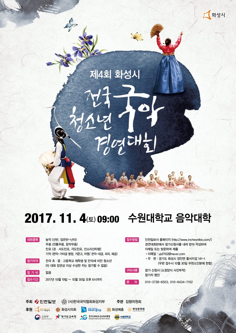 제4회 화성시 전국 청소년 국악경연대회 페이지 정보 작성자 화성예총 댓글 0건 조회 3,394회 작성일 : 17-10-30 본문 제4회 화성시 전국 청소년 국악경연대회 목록 이전글문학더하기 4차산업혁명 청소년문학특강 17.11.07 다음글제2회 화성관광 전국 사진공모 17.10.30 댓글목록 댓글목록 등록된 댓글이 없습니다.