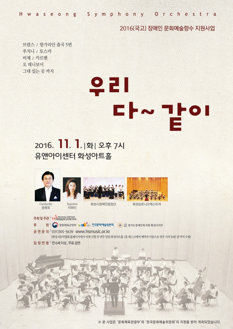 화성 교향악단(우리 다~같이) - 유앤아이센터 화성아트홀 페이지 정보 작성자 화성예총 댓글 0건 조회 3,516회 작성일 : 16-10-21 본문 화성 교향악단(우리 다~같이) 2016. 11. 1(화) 오후 7시 유앤아이센터 화성아트홀 목록 이전글2016 화성 춤 페스티벌 16.10.21 다음글제12회 화성예술제 개최 (9.9 ~ 9.10) 16.08.19 댓글목록 댓글목록 등록된 댓글이 없습니다.