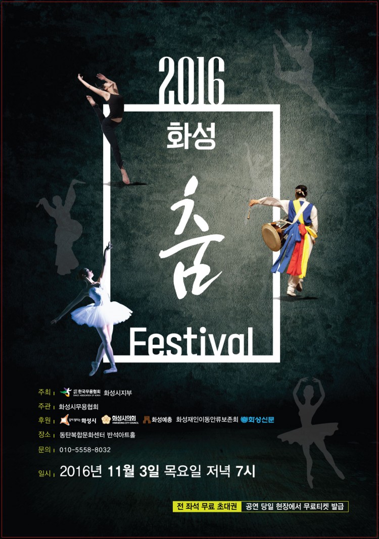 2016 화성 춤 페스티벌 페이지 정보 작성자 화성예총 댓글 0건 조회 3,182회 작성일 : 16-10-21 본문 2016 화성 춤 페스티벌 2016년 11월 3일(목) 저녁 7시 동탄복합문화센터 반석아트홀 목록 이전글양심찾기 프로젝트 전시회 16.11.08 다음글화성 교향악단(우리 다~같이) - 유앤아이센터 화성아트홀 16.10.21 댓글목록 댓글목록 등록된 댓글이 없습니다.
