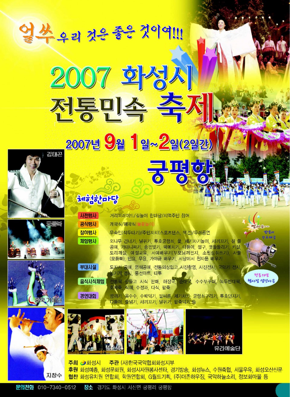 김영임, 김태곤 등 화려한 출연진과 각종 국악민속공연, 체험부스, 경연대회,