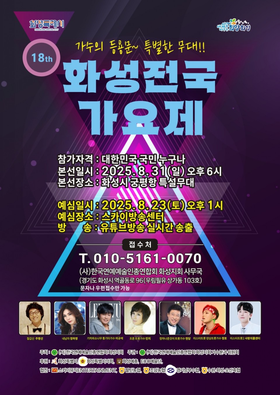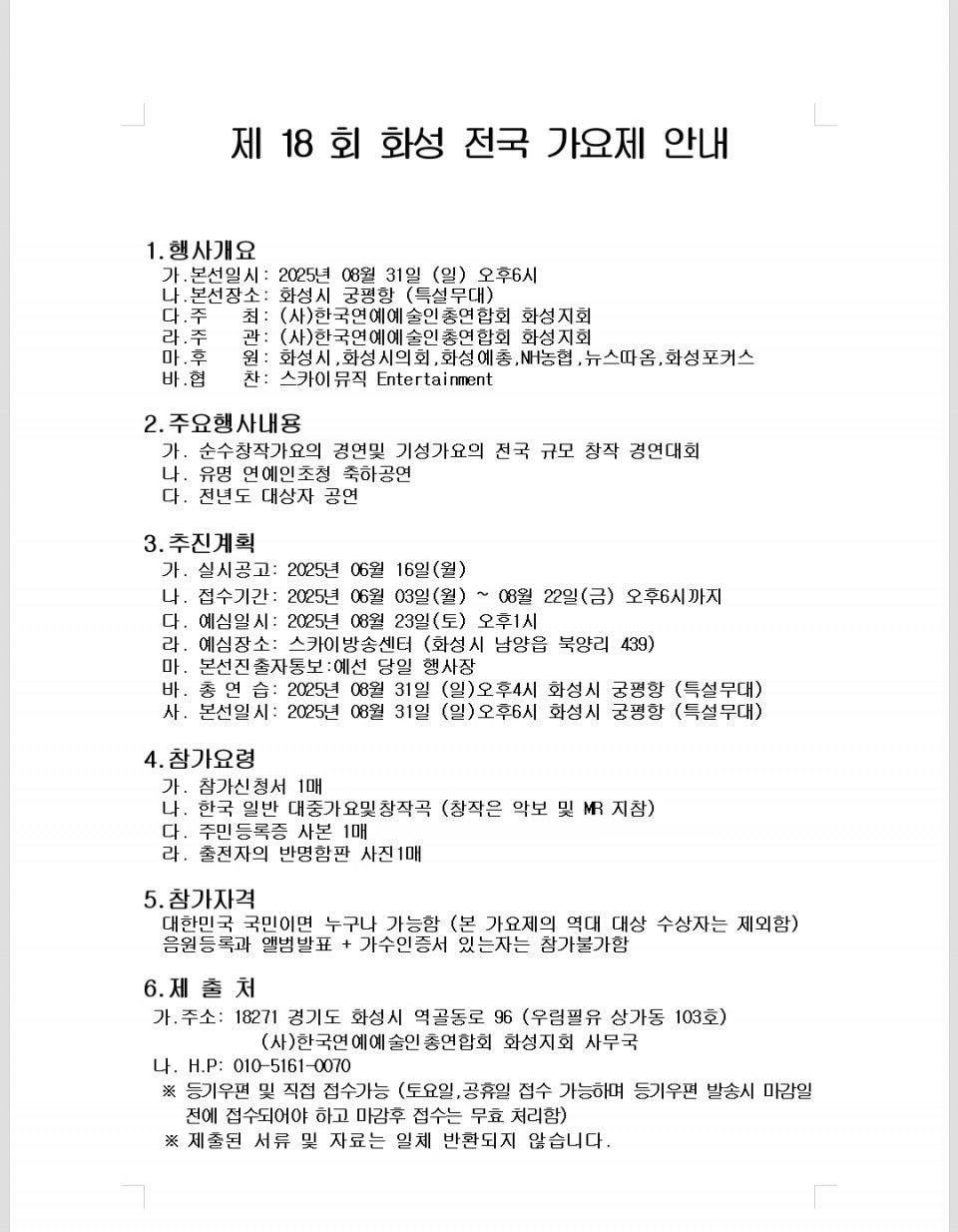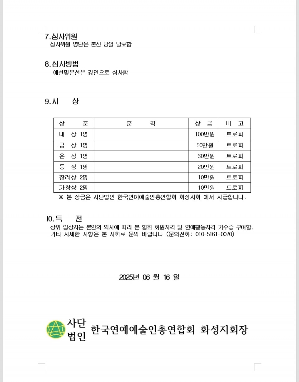 제18회 화성 전국 가요제 페이지 정보 작성자 최고관리자 댓글 0건 조회 2,587회 작성일 : 25-06-26 본문 제 18회 화성 전국 가요제 목록 이전글2025년 제19회 제부도바다시인학교 제9회 제부도시낭송대회 25.08.19 다음글2025 제11회 화성시예술인대회 25.05.30 댓글목록 댓글목록 등록된 댓글이 없습니다.